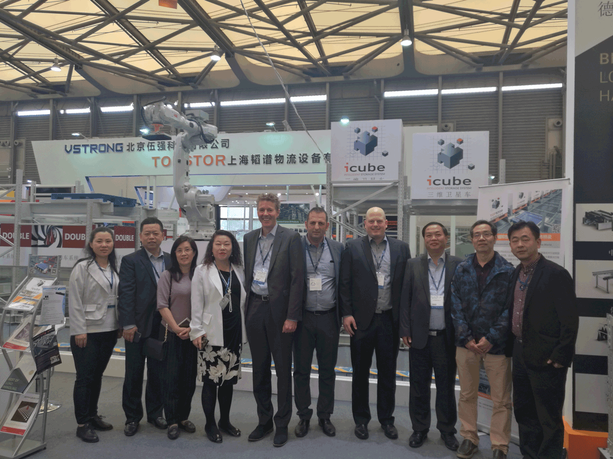 伍强科技今年是第二次参展,与上海韬谱公司联合参展,开辟了一个全新的模式。本次展出的产品包括机器人、托盘式4向车、托盘式子母车、SCHOLZ货架等。重点展示工业4.0概念,密集存储概念等,以此向行业表达伍强对于未来的理解:拆零拣选、密集储存、自动拆码垛将是未来的关键物流设备,将分别在电子商务、冷链、工业4.0领域中得到广泛应用。