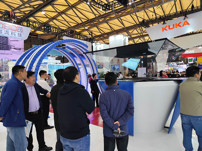 Through holographic projection equipment, Vstrong comprehensively displayed currently popular intelligent warehousing solutions including AS/RS systems, MINILOAD systems, OSR systems, and case shuttle systems. Simultaneously, the large screen presented numerous project videos featuring various solution cases such as pallet dense storage systems, CTU systems, and A-frame systems.